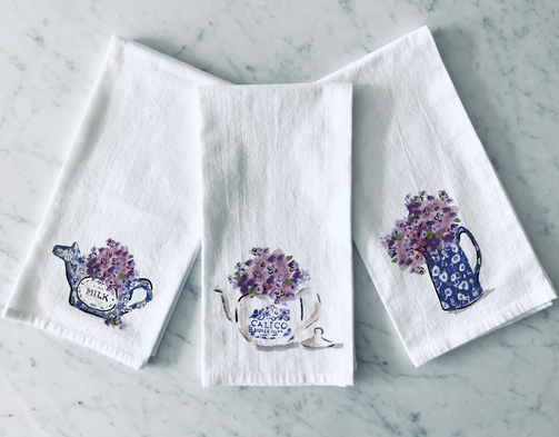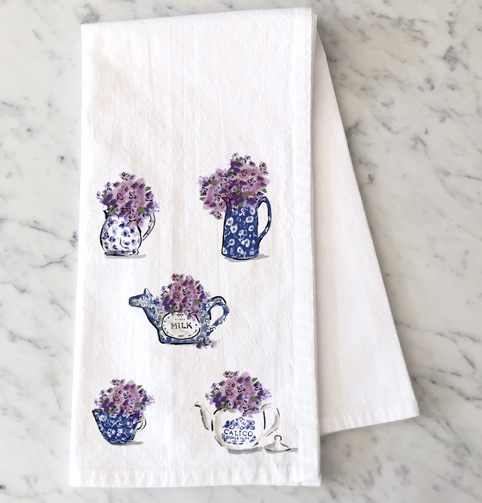 Calico China and Lilacs Tea Towel