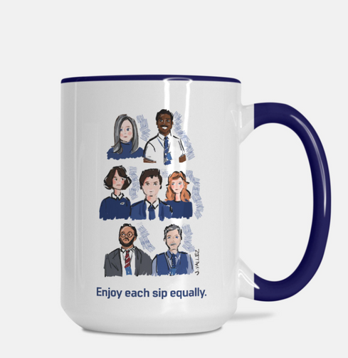 Two-Sided Design White Ceramic with Dark Blue Inside + Dark Blue Handle