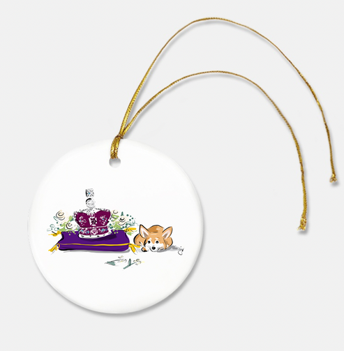 Queen Elizabeth Crown & Corgi Two-Sided Ornament